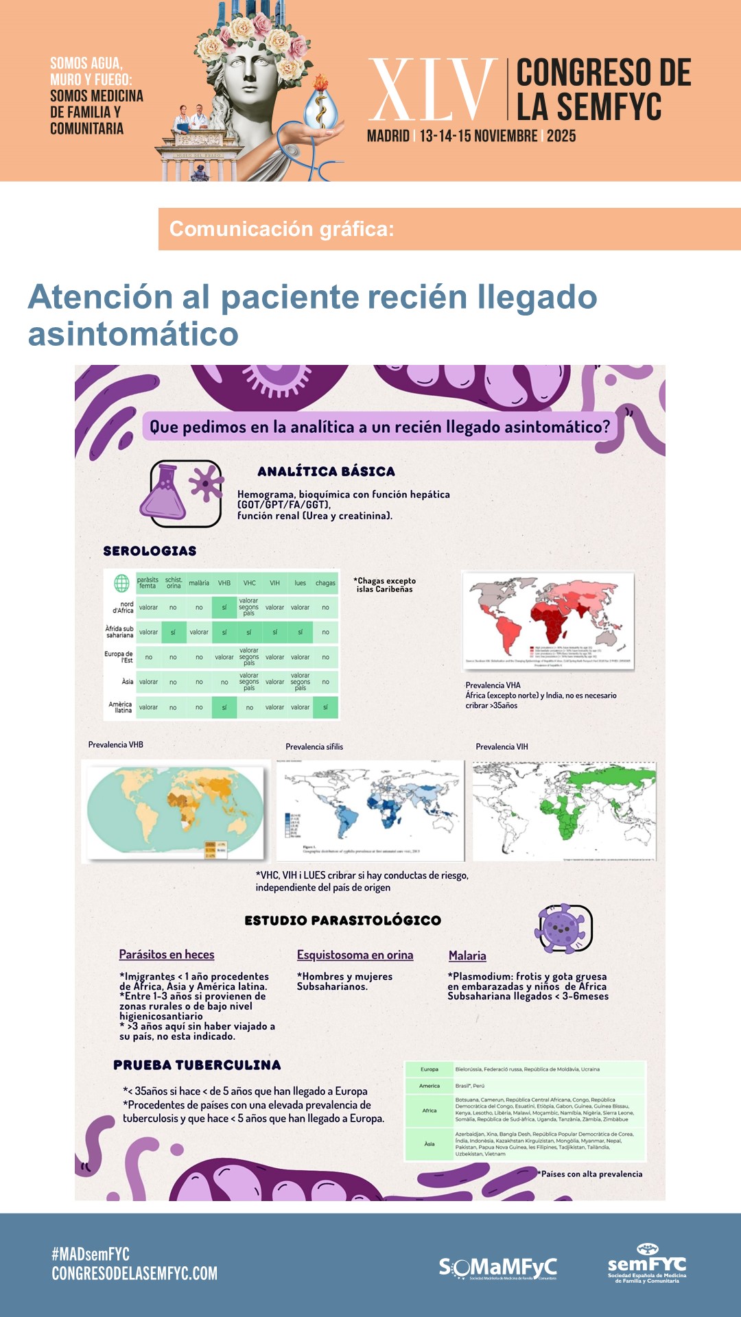 Se quiere resaltar la importancia de la detección en Atención Primaria de infecciones que pueden cursar asintomáticas prevalentes en los países de origen e infrecuentes en el nuestro, que pueden desarrollar severidad en un futuro (esquistosoma, estrongiloides, Chagas, TBC, etc.), con métodos de detección no invasivos y por lo tanto su cribado sería costo-efectivo, aunque en la mayoría de guías clínicas el cribado de la patología importada dispone de una recomendación débil o media.