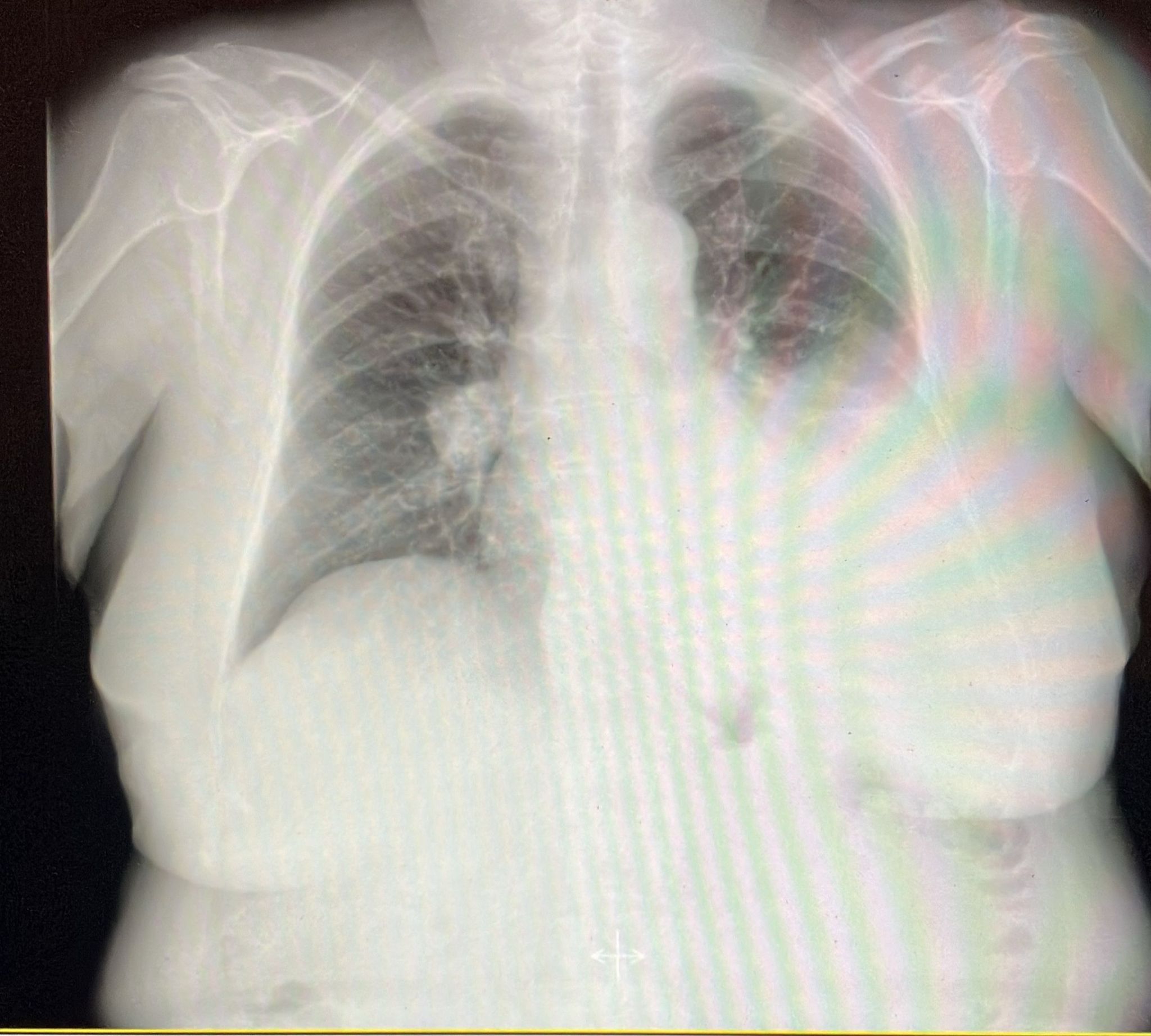 AP Hipoventilacion campo izdo desde base hasta campos medios y crepitantes en base derecha.