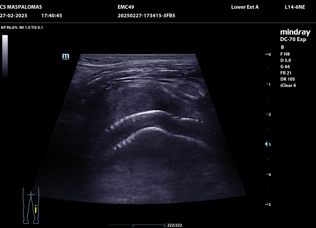 Ante la sospecha de quiste poplíteo, se solicita una radiografía de rodillas en carga, sin hallazgos patológicos y se realiza una interconsulta a Traumatología quien solicita RMN que no llega a realizarse. Meses después, el paciente regresa con dolor persistente, a pesar de una infiltración del quiste realizada por fisioterapeuta.
