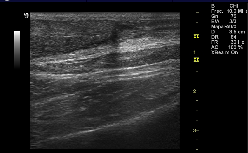 Rotura del espesor completo de ambos tendones Aquíleos, a 4 cm del borde superior del calcáneo aproximadamente, con retracción del cabo proximal y GAP entre ambos cabos de 3 cm. No se ve derrame articular, aunque sí cierto edema de tejido celular subcutáneo.Pruebas complementarias