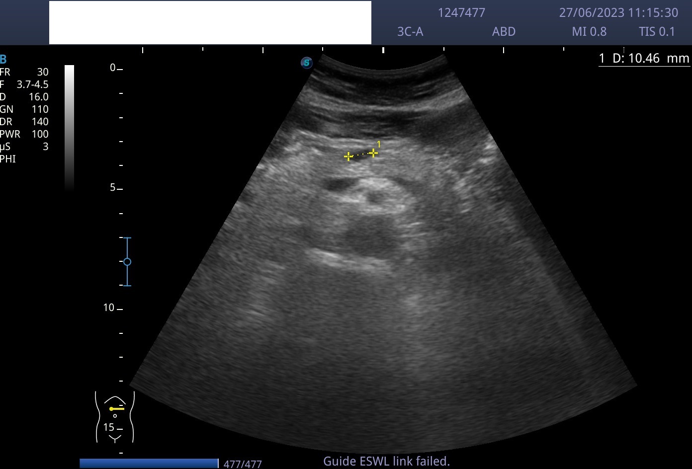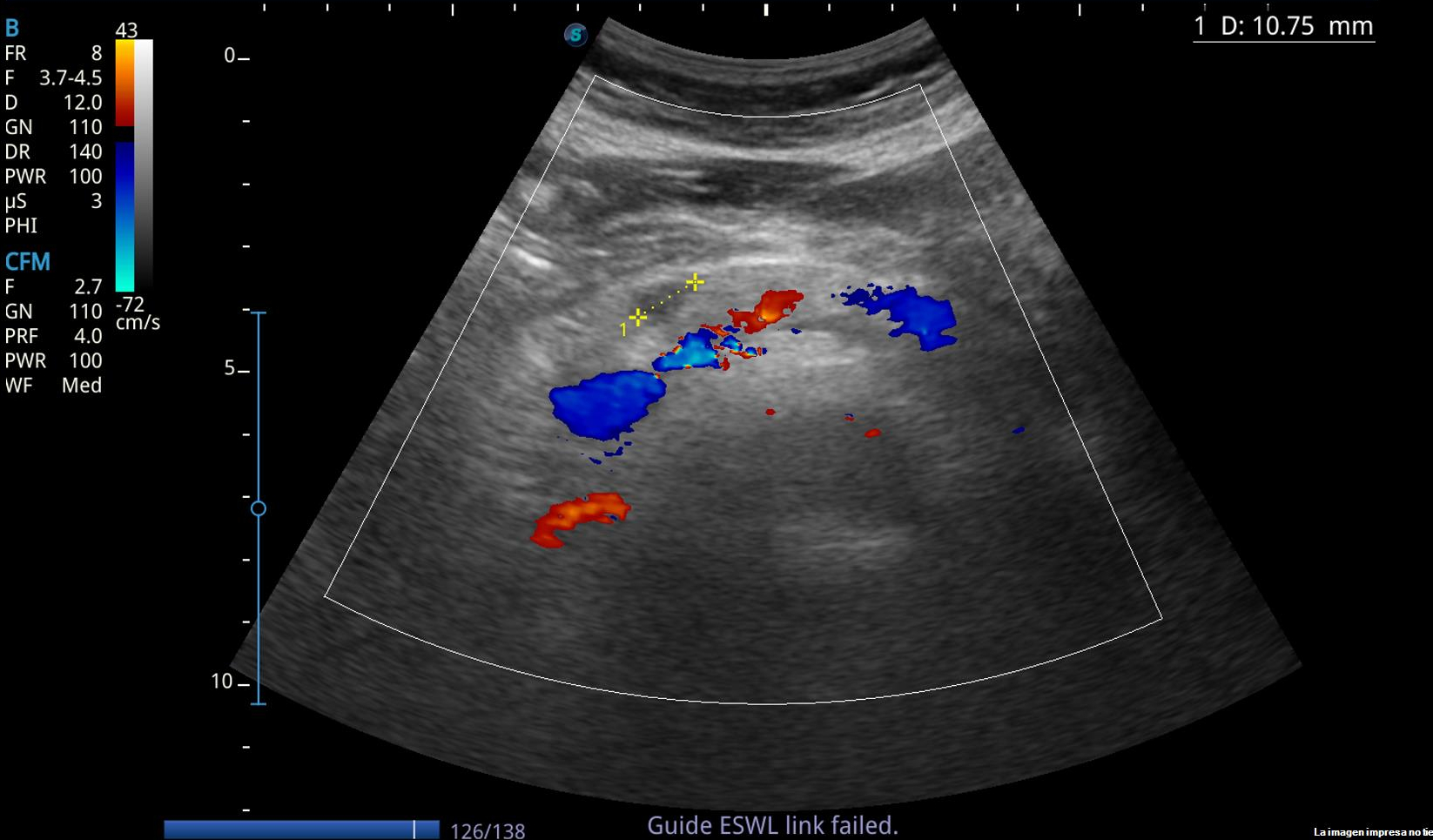 Ecografía abdominal reglada en Hospital de referencia con misma sospecha clínica que la realizada en Atención Pirmaria.