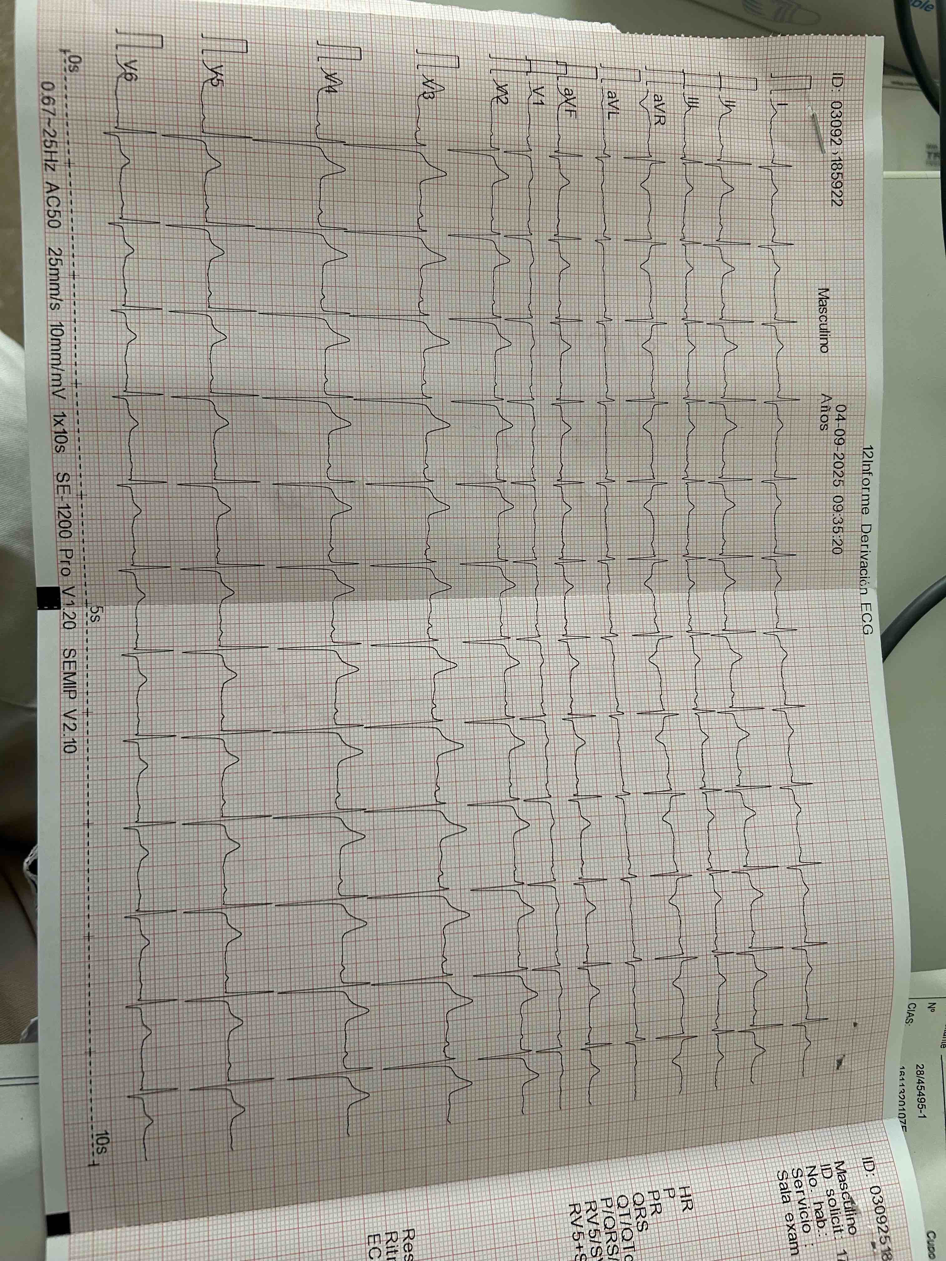 Al tratarse de un paciente con factores de riesgo cardiovascular decidimos realizar ecografía cardíaca; en la cual se visualiza una FEVI aparentemente preservada. Hipertrofia del septo con colapso de ventriculo derecho, bastante llamativa en una ventana de cuatro cámaras.