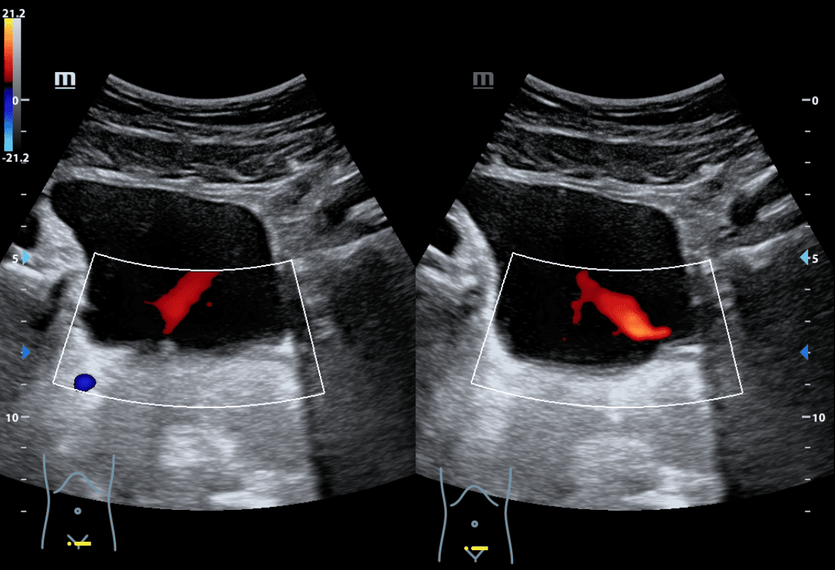 Se realiza ecografía en la misma consulta a fin de descartar cólico renal complicado.
