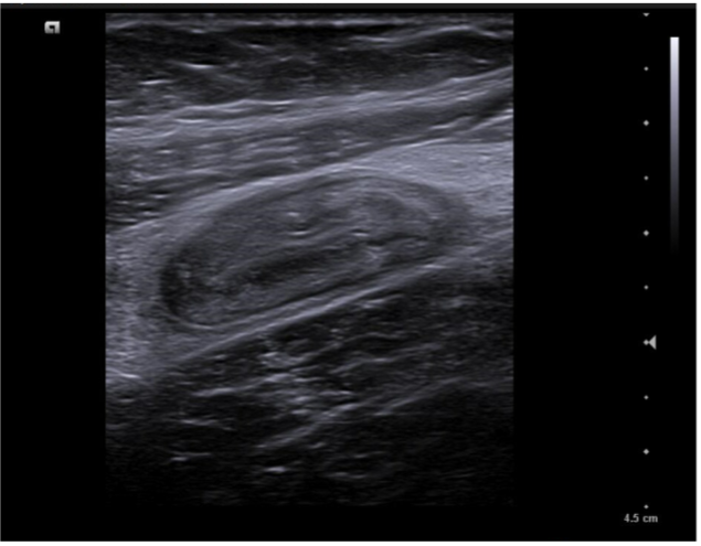 Caso 1. Asa intestinal en FID con poca movilidad (vista con sonda lineal) posible apendicitis.