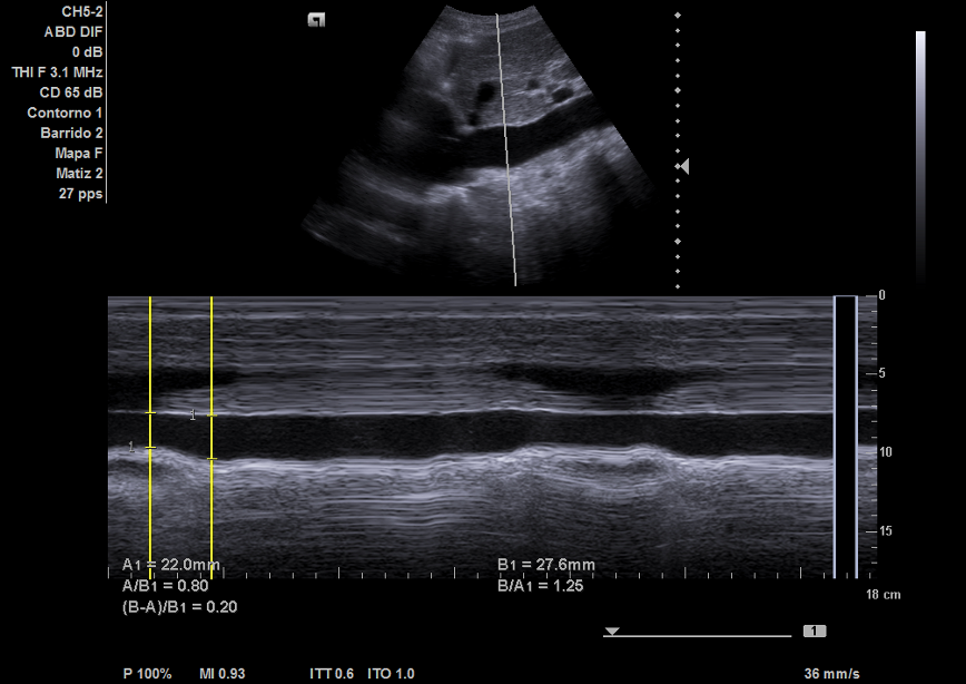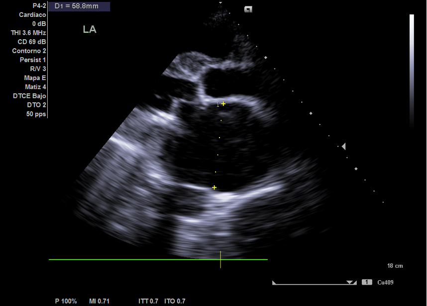 El paciente fue citado en cardiología en el plazo de una semana ante las imágenes de la ecografía clínica aportadas, donde se confirmó mediante ecocardiografía: prótesis mecánica mitral disfuncionante por probable trombosis protésica, Insuficiencia tricúspidea muy severa, hipertensión pulmonar severa y datos de congestión venosa sistémica.
