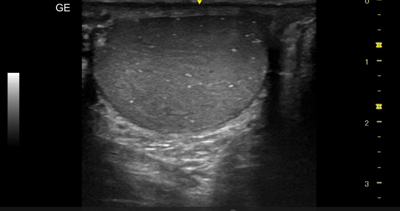 La ecografía testicular reglada testicular realizada al mes presenta resolución de orquiepidimitis y confirma microlitiasis testiculares.