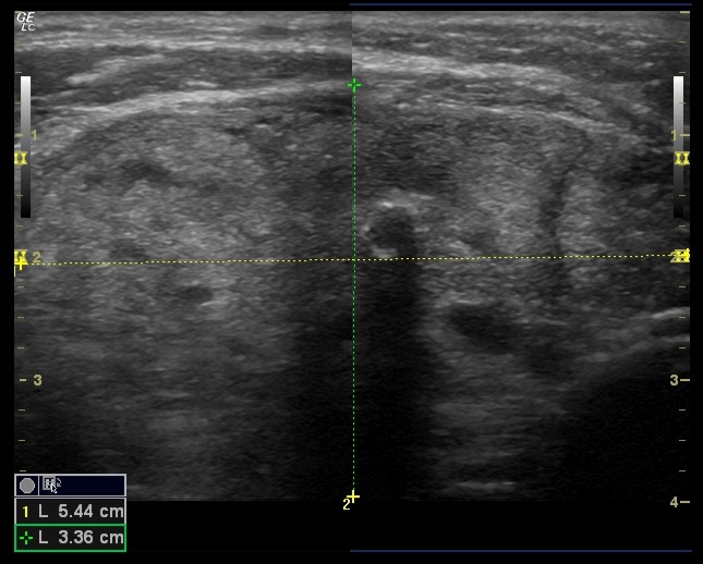 Dado el antecedente quirúrgico y la masa cervical progresiva, se decide realizar ecografía clínica en consulta.