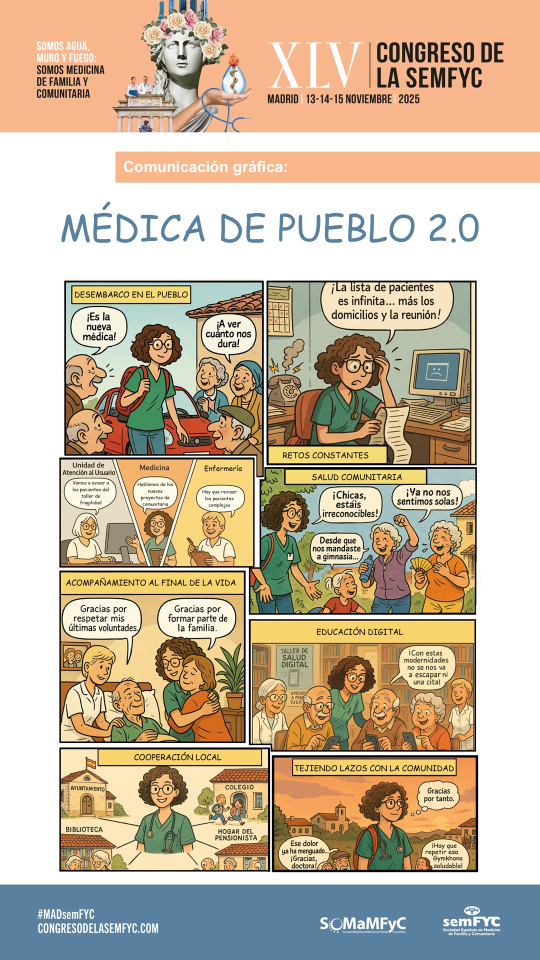 Esta comunicación gráfica tiene como objetivos poner en relieve la labor del Médico de Familia rural a través de escenas de la práctica diaria, así como enfatizar el importante papel que desempeña dentro de la comunidad como dinamizador social y catalizador de cambios.