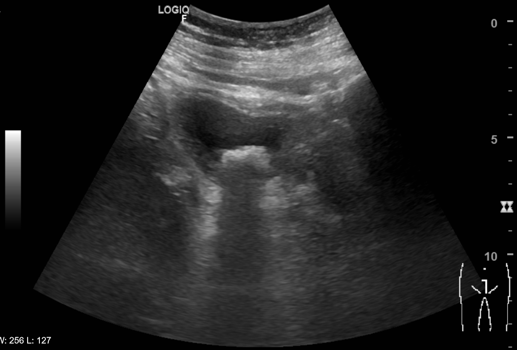 Juicio clínico: Litiasis en la vejiga. Diagnóstico diferencial: Tumor de vejiga/Hipertrofia benigna de próstata/Infección del trato urinario.