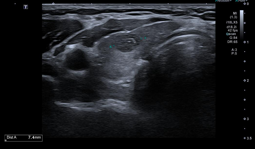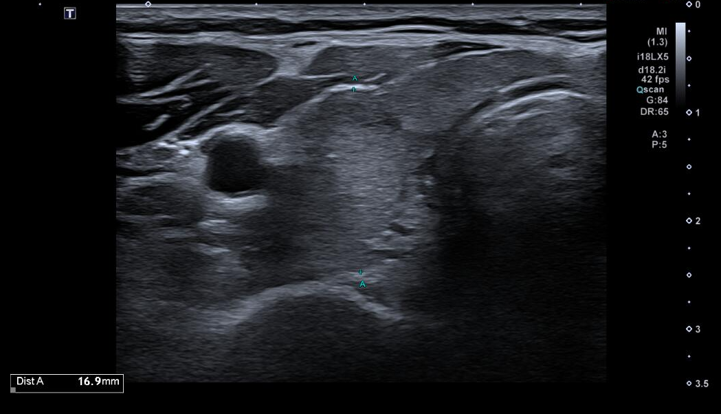 Tras la realización de Ecografía Clínica y Ecografía Reglada, junto con las pruebas inmunológicas, se realiza diagnóstico de tiroiditis autoinmune, no siendo necesaria la realización de pruebas diagnósticas adicionales. Seguimiento de función tiroidea en 3 meses y evolución de la clínica.