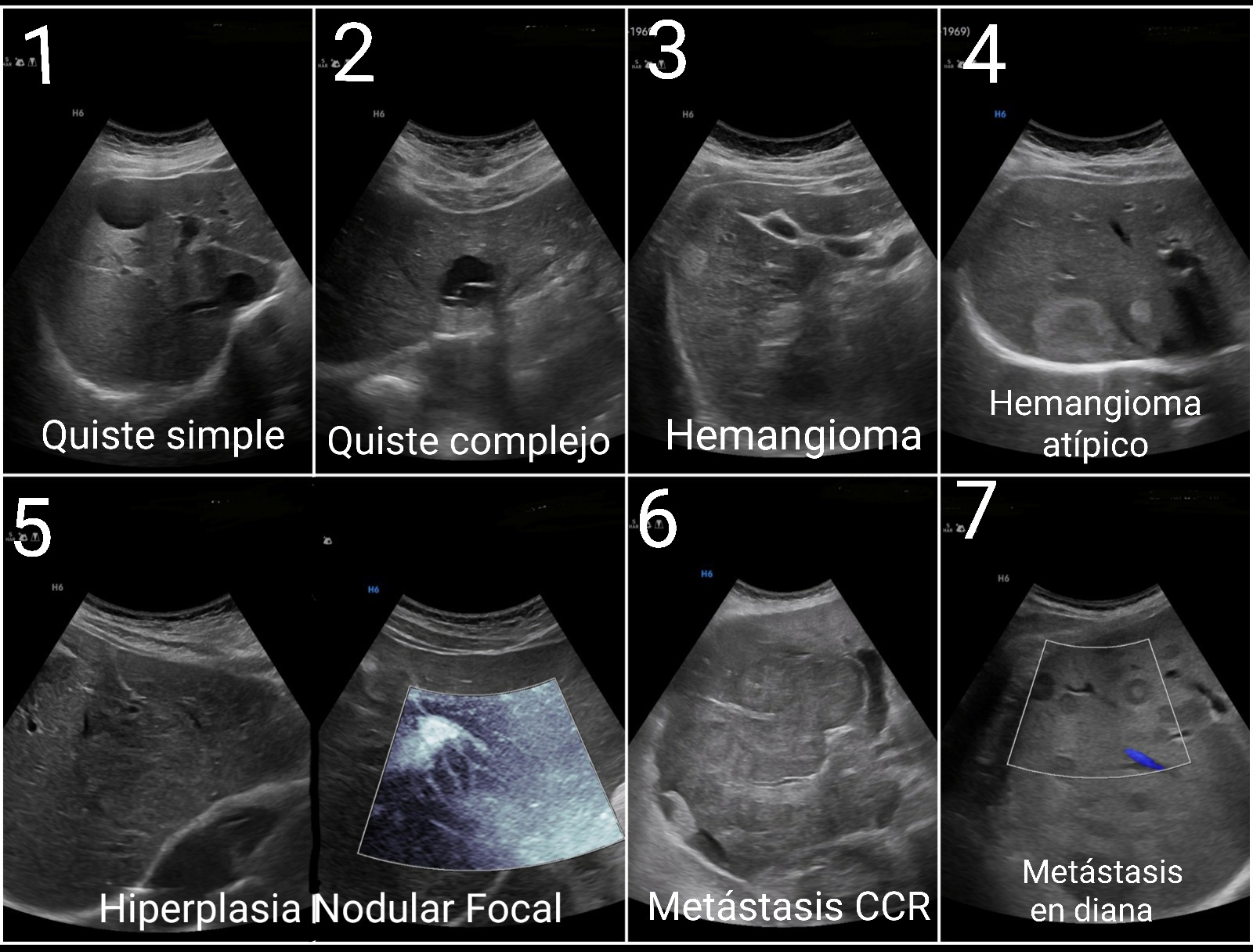 La HNF puede ser un reto diagnóstico por ser isoecogénico con el parénquima circundante, el patrón de vascularización nos orientará. En caso de lesiones anecogénicas, bien delimitadas sin captación pensaremos en quistes simples. Si son hiperecogénicas sin captación, serán hemangiomas. La detección de lesiones en diana, hipoecogénicas o heterogéneas nos obligará a solicitar otras pruebas de imagen y derivar por el posible origen neoplásico.