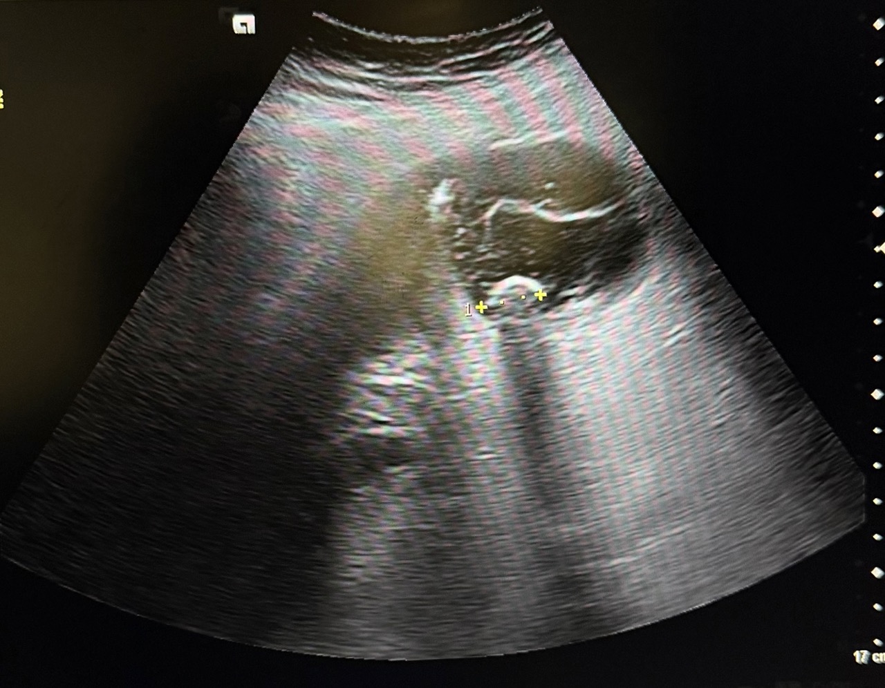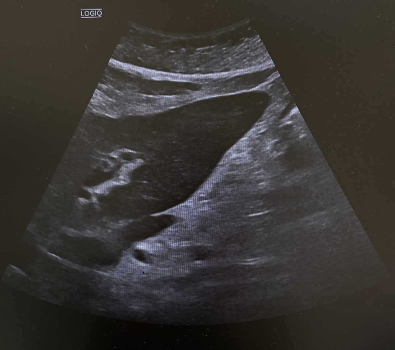 Ecografía en el centro de salud: Vesícula biliar con presencia de litiasis en su interior, distendida y engrosada. Murphy ecográfico positivo.