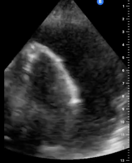 Ante el cuadro de hipotensión, Se decide realizar ecografía clínica urgente para valoración sospechando la existencia de taponamiento cardiaco.