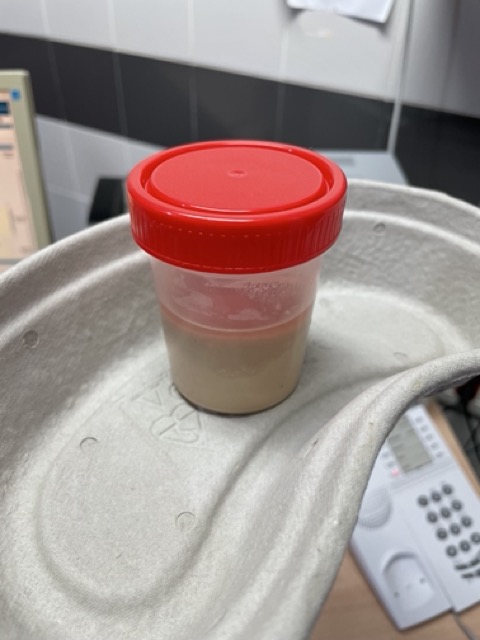 Sospechamos un prolapso uterino por los antecedentes obstétricos, pero su hija señala "no tiene útero", lo cual no constaba en la historia. Por tanto, la masa era compatible con cistocele. Se intenta reducir sin éxito debido al gran volumen, por lo que se realiza sondaje intermitente, extrayéndose material purulento.